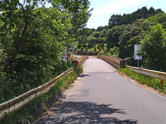 アクトビレッジおのは国道490号線沿いに看板が出ているので、そこを曲がると一本道なので迷うことはないと思います。アクトビレッジおのを右手に見て、そのまま道をまっすぐ進むと橋が。