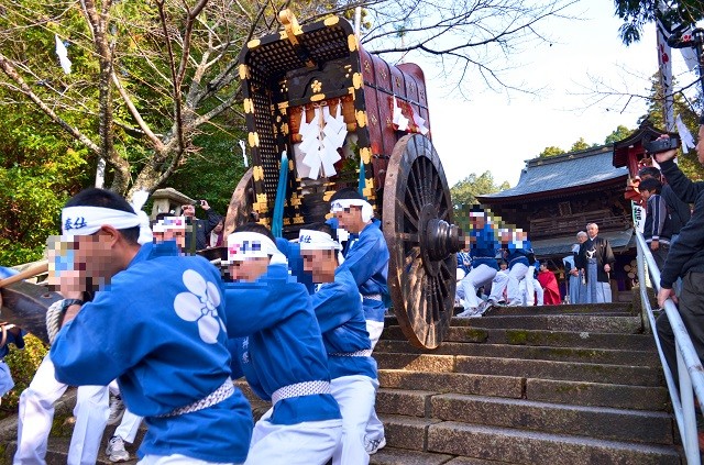 締めくくりは、古熊神社の石段を御網代車が一気に駆け上がり、祭りの最後を盛り上げます。