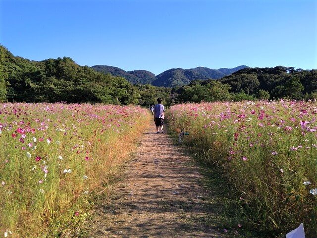 コスモス畑の中に道が作ってあるので、畑の中を歩けますよ
