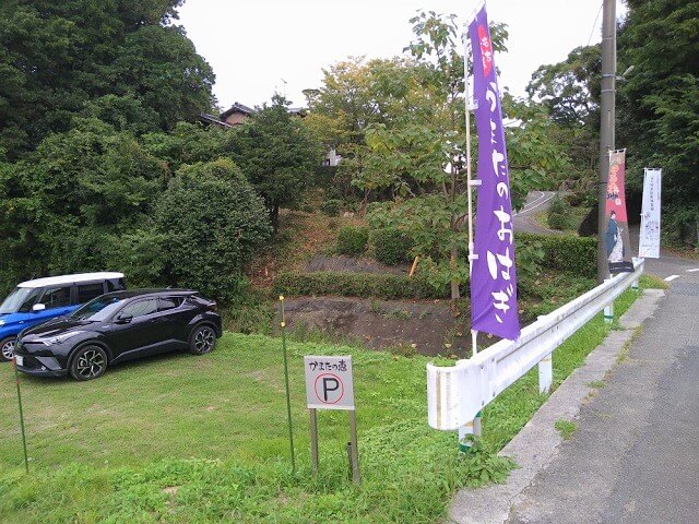こちらは幟がたくさん立っているのと、駐車場の小さな可愛い看板が出ているのですぐにわかります。