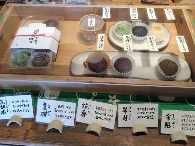 店内には定番ラインナップが7種類と、月替わりで「季節のおはぎ」が用意されています。