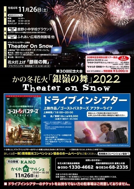 花火の前に開催されるドライブインシアターでは、「ゴーストバスターズ アフターライフ」を上映します。