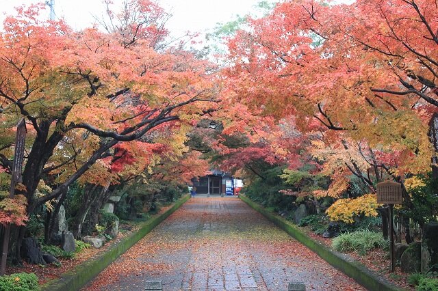 両脇にはモミジが連なり、美しい紅葉のトンネルが訪れる人を出迎えてくれます。