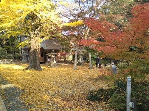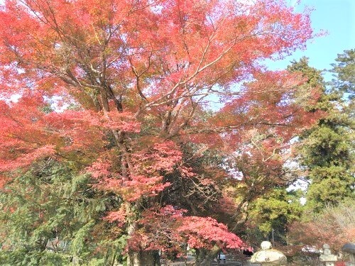 また境内にはモミジも植えられており、赤と黄色の鮮やかな紅葉を楽しめます。