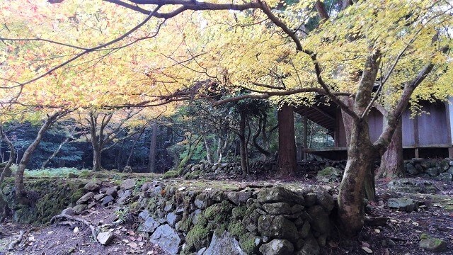 そこに色づいたモミジが鮮やかな彩りを添えていて、なんとも美しい侘び寂びの世界を見ることができます。