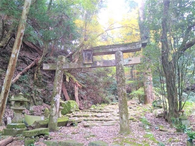 石段は苔むしてガタガタ。鳥居も壊れたままのお姿で廃墟感たっぷり。