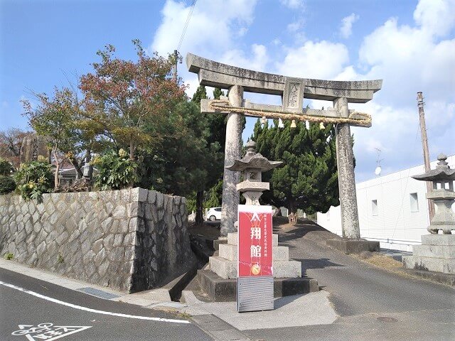 滝部八幡宮の鳥居の左脇のにあるゆるい坂道をのぼると、大翔館があります。