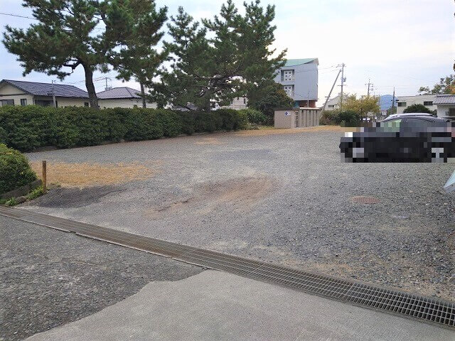 看板どおりに県道184号線を曲がると、駐車場の矢印が出ています。