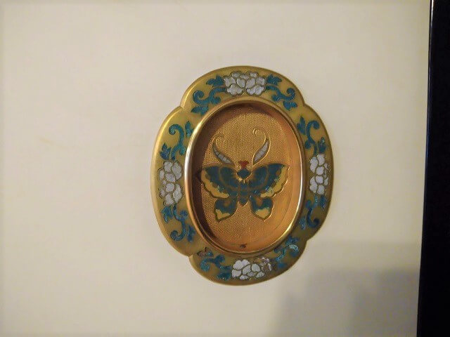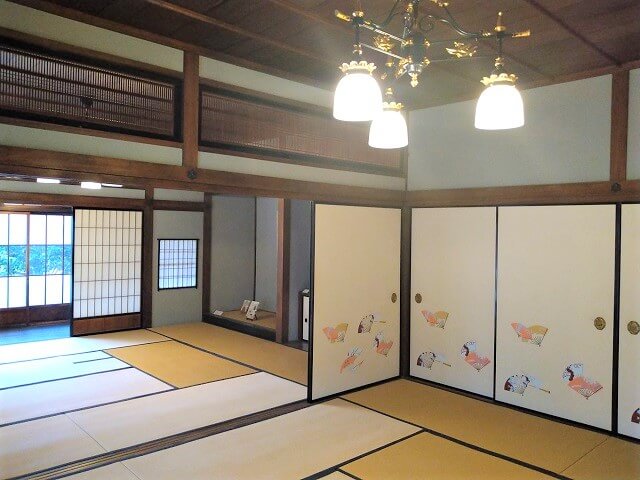 襖や引手などに、ほかの部屋にはない華やかさが見られます。