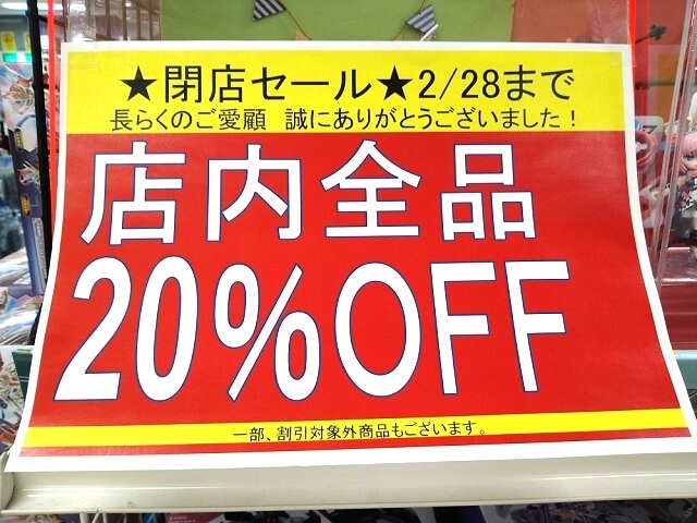 現在、店内全品20%オフの閉店セール中です(一部、割引対象外商品あり)。