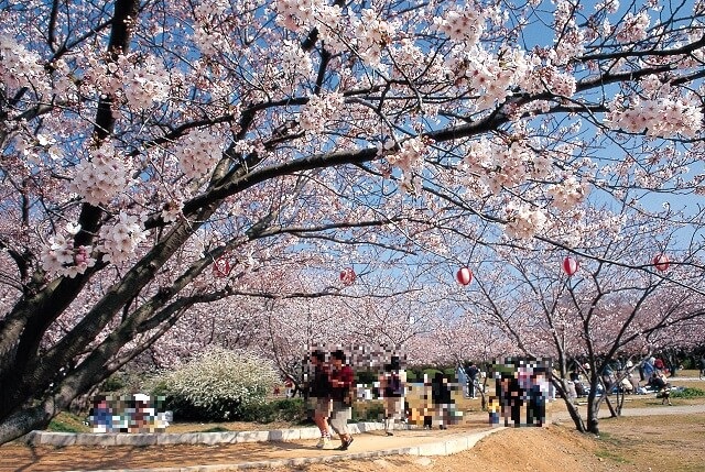 公園にはソメイヨシノが410本植えられ、満開の時期には、360度どこを見ても桜を眺めることができる、桜の絶景スポットです!