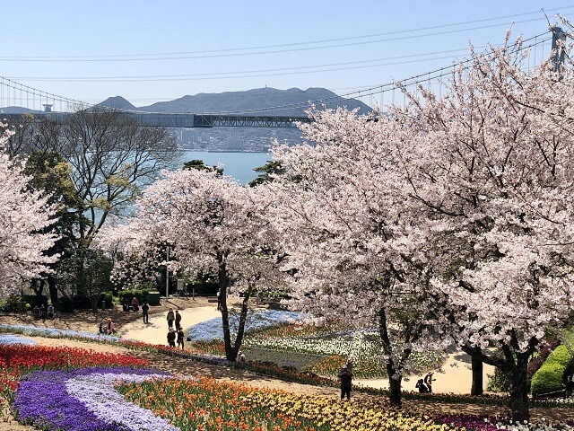 山頂にも桜が180本植えられており、関門海峡を眺めつつお花見を楽しめますよ。