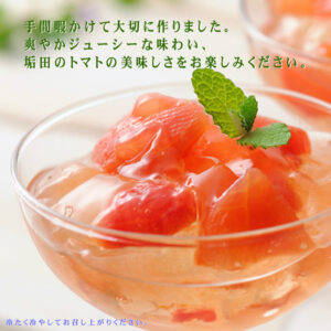 ”ぷるんつるん”のゼリーと肉厚の果肉の食感で垢田トマトを贅沢に楽しめるスイーツです。