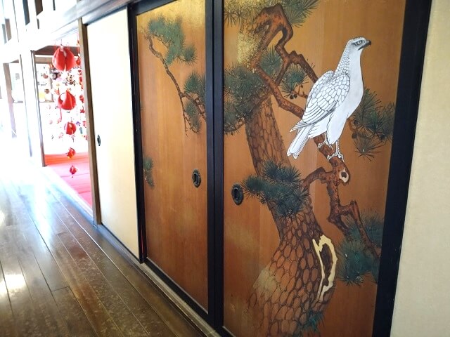 こちらは受け付けすぐの廊下にある、明治時代に活躍した日本画家、川端玉章(かわばたぎょくしょう)作の杉戸絵。