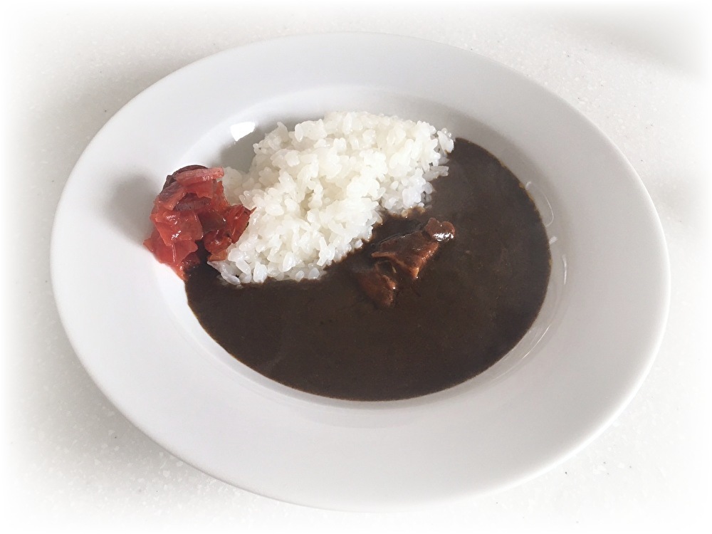 福神漬けは、近所のスーパーで買ってきて、ちょこっと添えました。