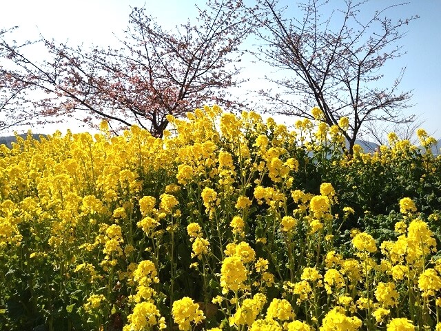 3月上旬には、河津桜と菜の花のコラボレーションを満喫しようと、多くの方々で賑わっていました。