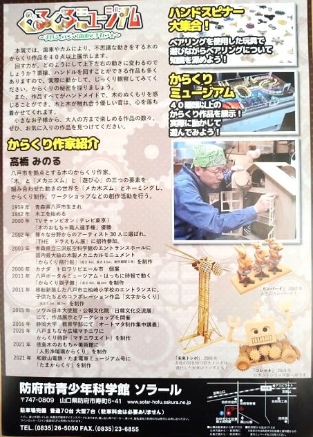 からくりの不思議と木の温かみを感じに、ぜひ、防府市青少年科学館ソラールに行ってみてくださいね!