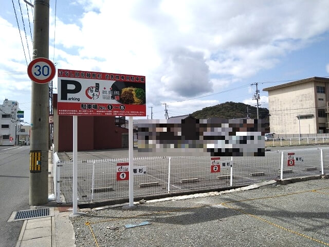 駐車場は、通りから信号をファミリーマート側(イオン防府側からは右折)に入った右手。