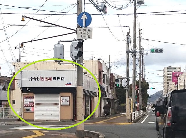 防府駅港口、イオン防府や防府商工高等学校がある、にぎやかな通り沿いです。