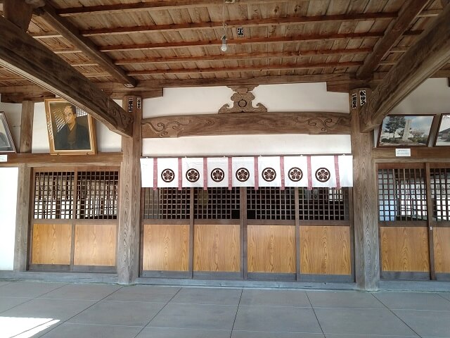 拝殿の中には、益次郎の肖像画や、ゆかりの地の写真が飾られていました。