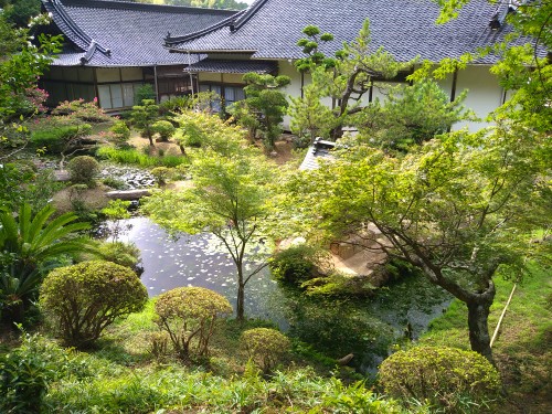 本堂の裏には、室町時代の画聖・雪舟の作といわれる庭園があります。