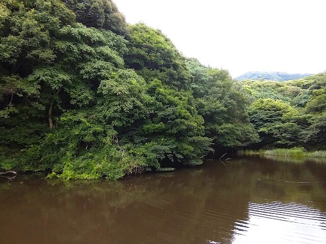 堤にはたくさんの藤が生い茂っており、鯉も元気に泳いでいました。