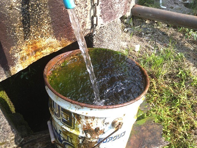 そこにあるのはホースから流れ出る水と、それを受け止めるバケツ。