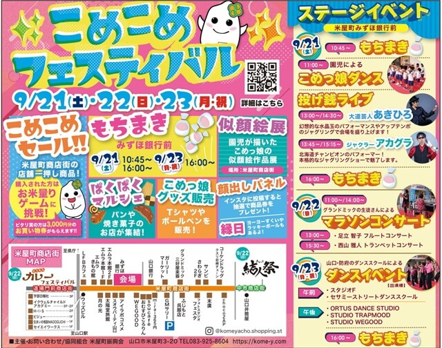 米屋町商店街では9月21日(土)~23日(月)までの3日間、「こめこめフェスティバル」を実施。