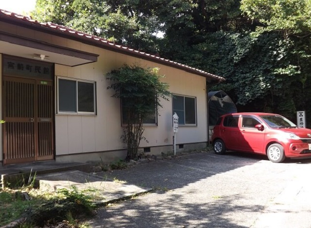 坂の手前左手に地区の会館があり、こちらは参拝者の駐車場のこと。