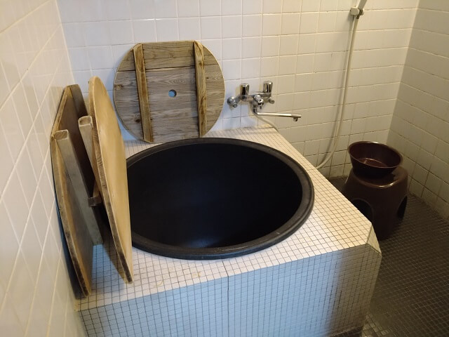 昔ながらの薪で沸かす方法と、温水器でお湯を入れる方法とがあります。