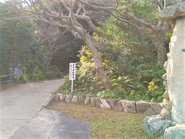 矢印に沿って進むと、参道を横切った場所に駐車場があります。