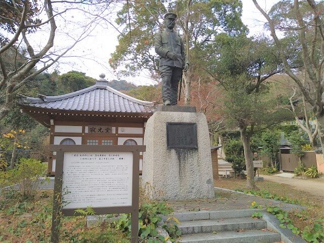 像は1979年に生誕150年を記念して作られたもので、山門を入ってすぐの左手に建立されています。