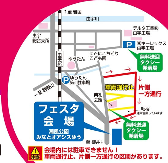 臨時駐車場(キーレックス由宇工場、由宇文化スポーツセンターゆうたん第1駐車場)が用意されます。