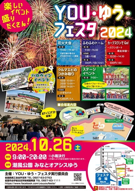 2024年10月26日(土)、「潮風公園みなとオアシスゆう」にて、「YOU・ゆう・フェスタ2024」が開催されます。