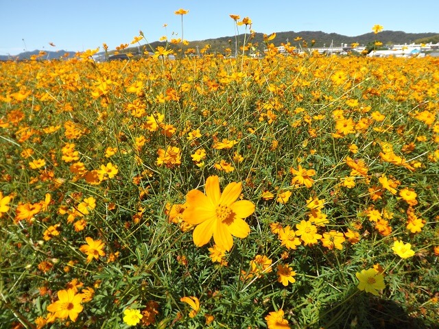 今年(2022年)は、ピンクや白のコスモスが見頃を迎える前に、100万本のキバナコスモス畑も登場しました。