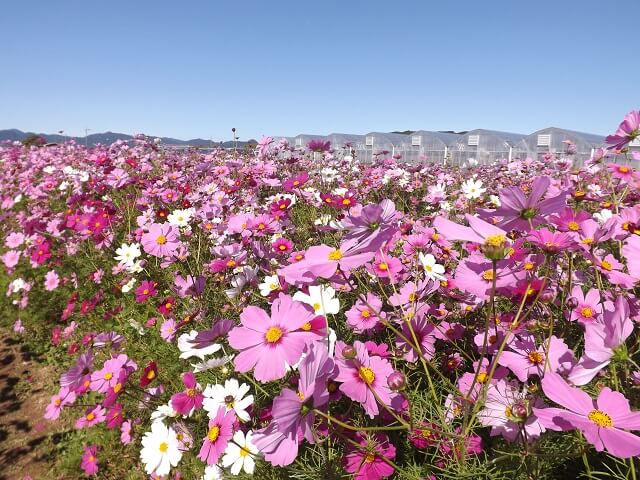 こちらでご案内するのは、ピンクや白のコスモス畑の場所です。