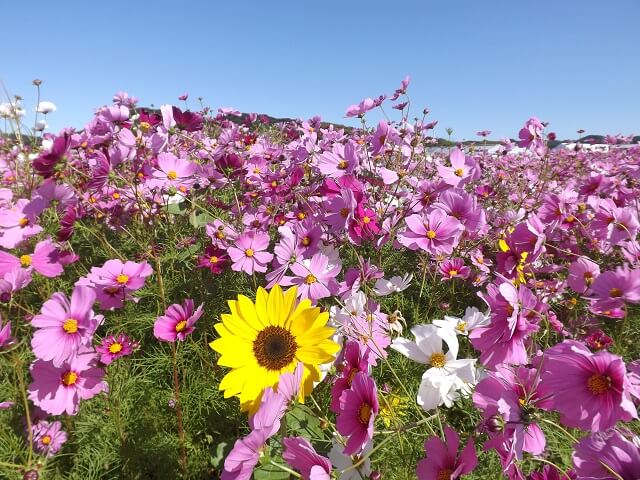 山陽小野田市にある「花の海」には、毎年100万本のコスモス畑がお目見えします。