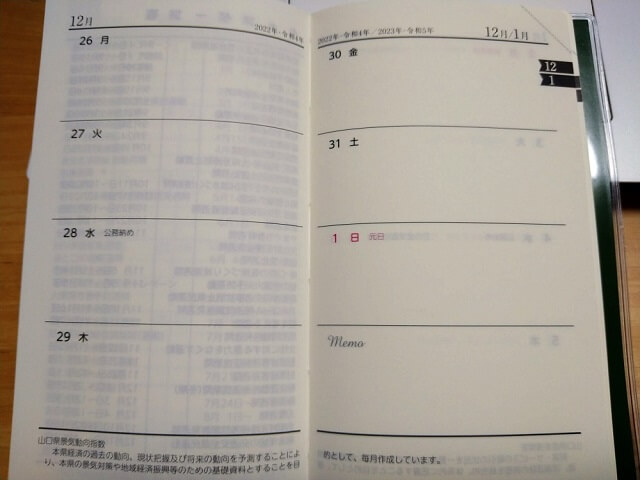 山口県民手帳は、毎年11月上旬に発売(今年は納品が遅れて11月下旬から販売)。
