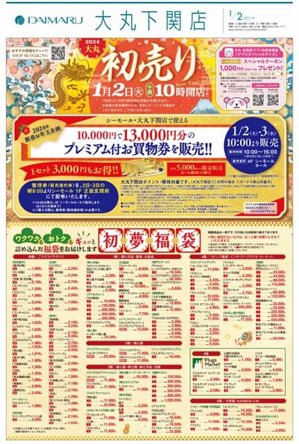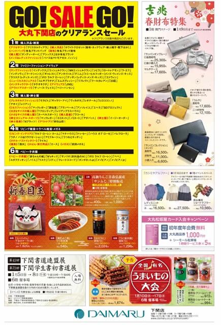 山口県内の百貨店、おもなショッピングモールの初売り、福袋、新春イベントなどをまとめてみました。
