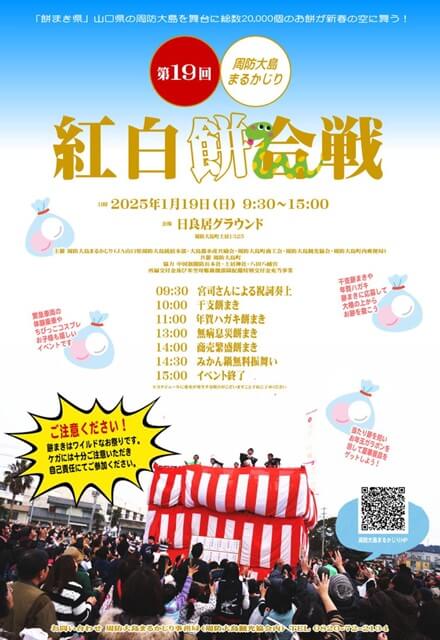 2025年1月19日(日)、周防大島町の日良居庁舎グラウンドにて、「周防大島まるかじり紅白餅合戦」が開催されます!