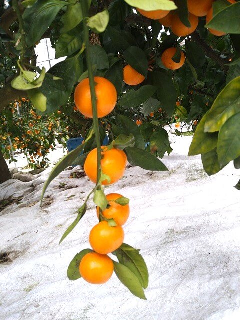 さらに、より甘くておいしいみかんにするために、地面にシートマルチを敷いて土地管理をします。シートマルチの反射光によって、みかんの着色も良くなるそうです。