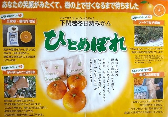 下関では、昭和50年代後半から越冬みかんの取り組みが始まり、「ひとめぼれ」と命名されたのは昭和61年とのこと。