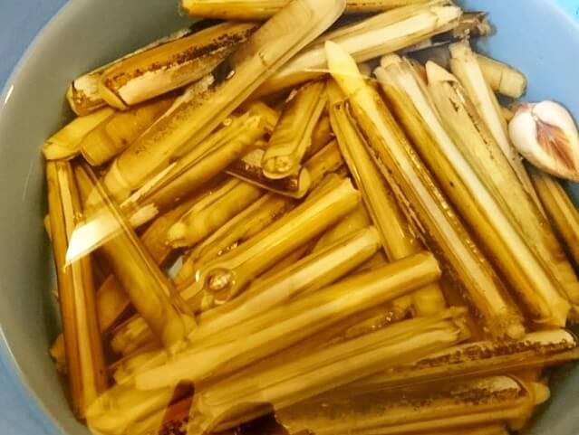マテ貝は塩抜きのあと、しょうゆバター炒めにして食べました♪