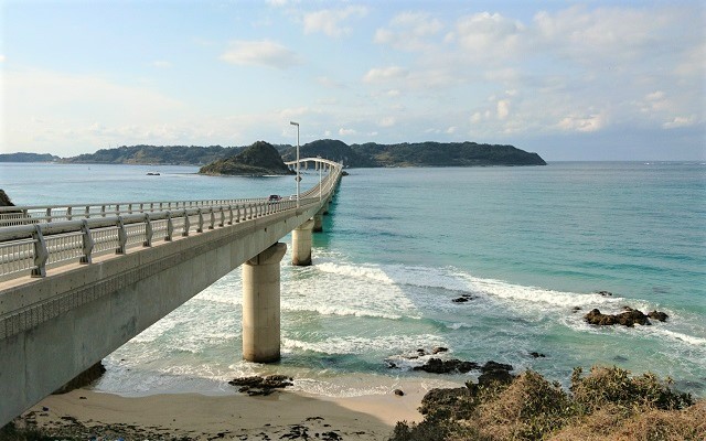 本州と角島を結んだ全長1780メートルの角島大橋は、なんと通行料無料。快晴の日には、ここは山口県なの? と思うほどの素晴らしい絶景をご覧いただけます^^