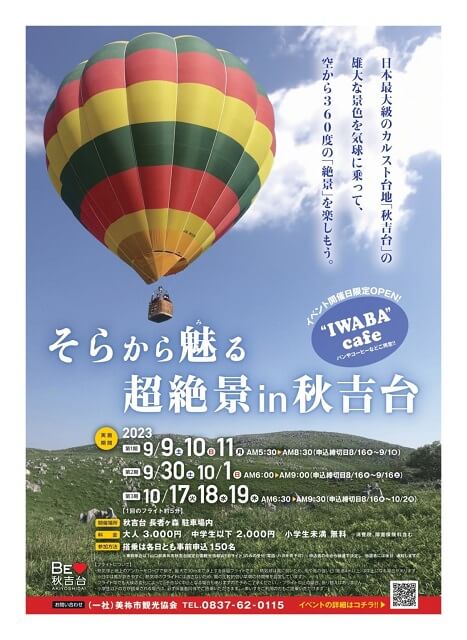 日本最大級の広さを誇るカルスト台地・秋吉台では、昨年も開催された熱気球に乗って空からカルスト台地を見渡すイベントが、今年も開催されます!
