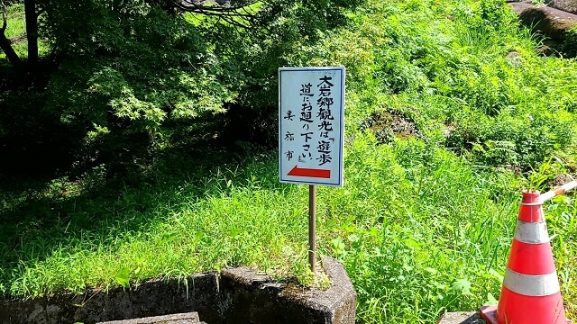 大岩郷向かって右側に舗装された道がありますが、これは農道で遊歩道ではありません!