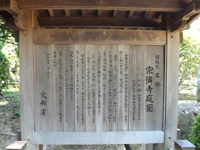 この庭は、宗隣寺ができる前からあったもので、宗隣寺の前にあった普済寺(ふさいじ)の池や庭を、のちに改修したものと考えられています。