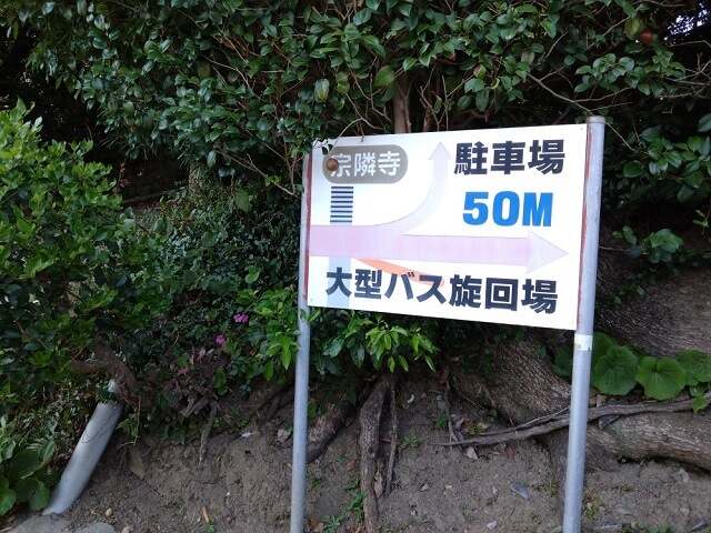 真締川沿いの道路から参道に入って行き止まると、右側に駐車場へ登る坂道があります。