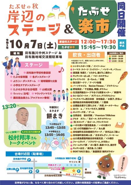 2023年10月7日(土)、「たぶせの秋 岸辺のステージ」と「たぶせ楽市2023」が同日開催されます