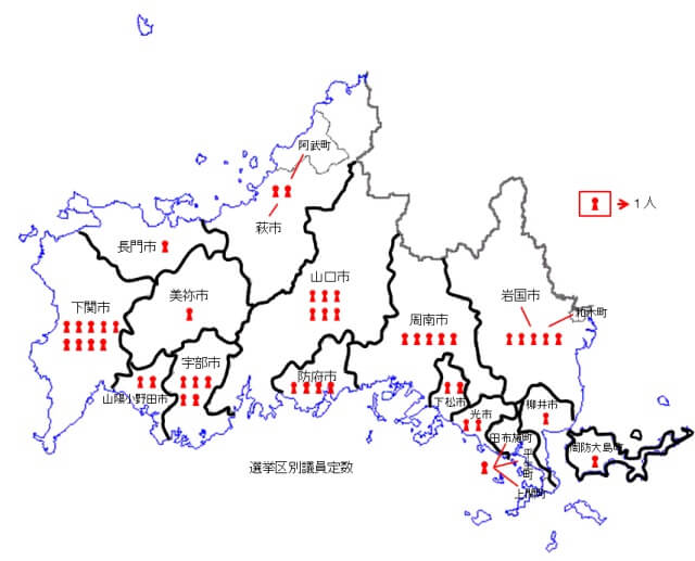日本全国を289の選挙区にわけて、各選挙区から一人を選出。山口県は3つの選挙区があるので、合計3人が選出されます。